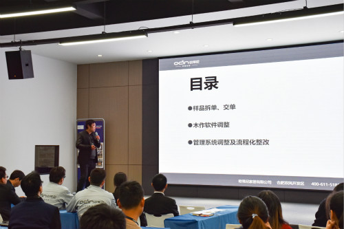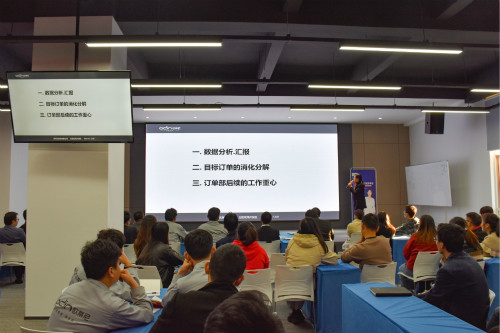 會(huì)議伊始,歐蒂尼營(yíng)銷總監(jiān)張總根據(jù)前后端數(shù)據(jù)的梳理,就目前公司現(xiàn)狀以及快速發(fā)展情況進(jìn)行了概括分析,強(qiáng)調(diào)生產(chǎn)團(tuán)隊(duì)一定要確保交貨周期,并對(duì)接下來的11-12月份的工作進(jìn)行安排部署。