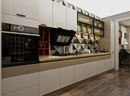 首先,櫥柜的設(shè)計(jì)符合人體工程學(xué),盡量減少廚房使用者的操作強(qiáng)度,提高操作效率合理利用每一個(gè)廚房空間。