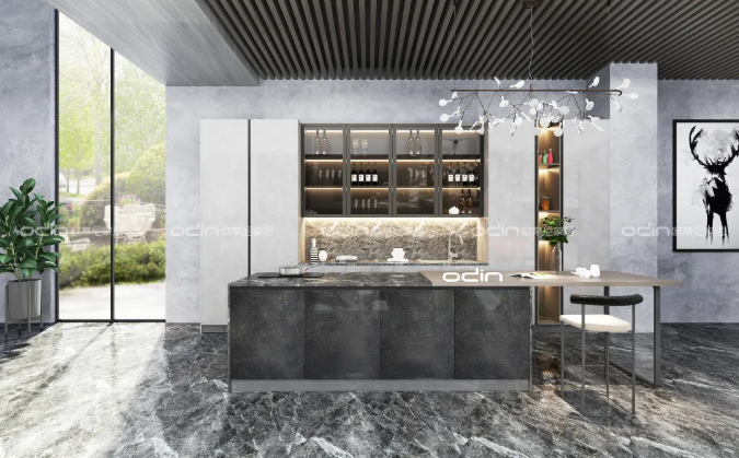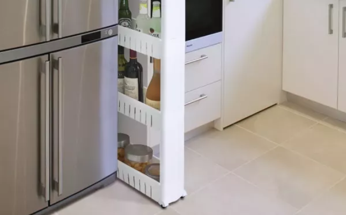 間隙用帶輪儲物架,這種儲物架通常造型獨(dú)特,能夠塞入櫥柜與操作臺之間的空隙中,最大限度地利用廚房空間的同時,也能讓雜亂小物隱藏起來,使廚房看起來更加整潔。