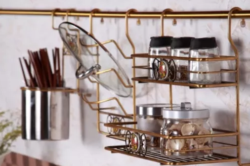 灶臺這里里溫度比較高,一般不要存放食品,容易變質(zhì)。鍋蓋單獨(dú)存放,可以把更多的鍋摞在一起,增加收納容量。鍋蓋可以放在分層架上,比較省地方。