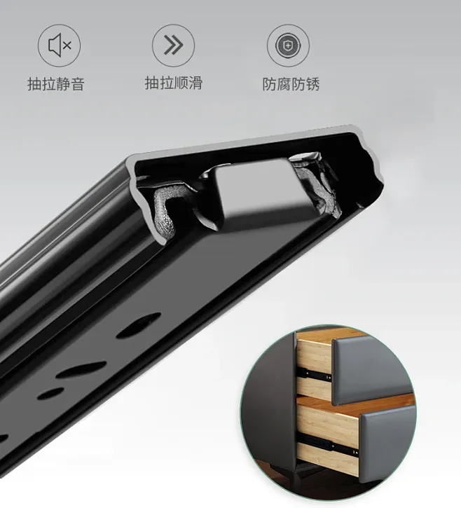 這款滑道以其卓越的靜音性能,讓每一次推拉都成為享受,徹底告別噪音的侵?jǐn)_。最多180顆鋼珠與軌道的精準(zhǔn)配合,不僅確保了水平與垂直的穩(wěn)定性,更通過自清潔功能,有效清除滑道內(nèi)的灰塵雜質(zhì),保持推拉的流暢與順滑,讓每一次使用都成為對品質(zhì)生活的致敬。