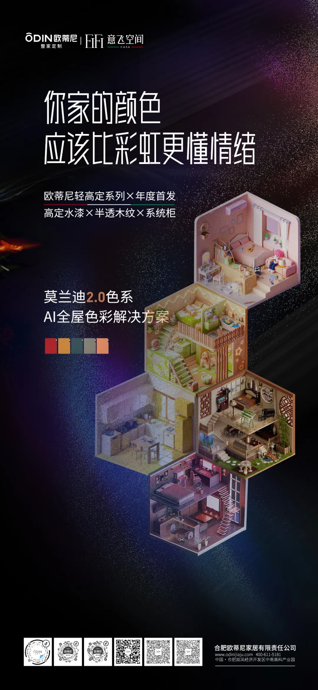 為了讓色彩搭配更加輕松,歐蒂尼還推出了AI全屋色彩解決方案。只需上傳戶型圖,AI算法便能迅速生成專屬配色方案,讓墻面、柜體、軟裝色彩無縫銜接,打造出既和諧又個性化的家居空間。在歐蒂尼的色彩哲學里,家不僅是一個居住的空間,更是一幅流動的藝術(shù)畫卷。